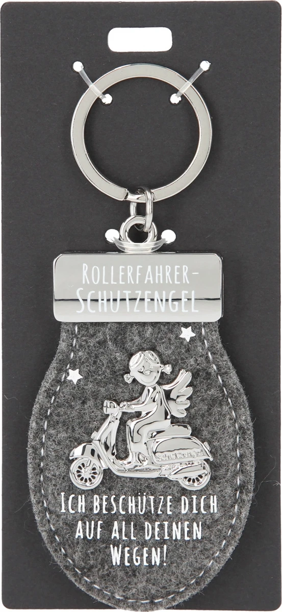 Ein süßer Schutzengel für die Liebsten unterwegs: Schlüsselanhänger aus Filz und Metall (Zinklegierung) in Auto-, Motorrad-, Motorroller- und Fahrradform.