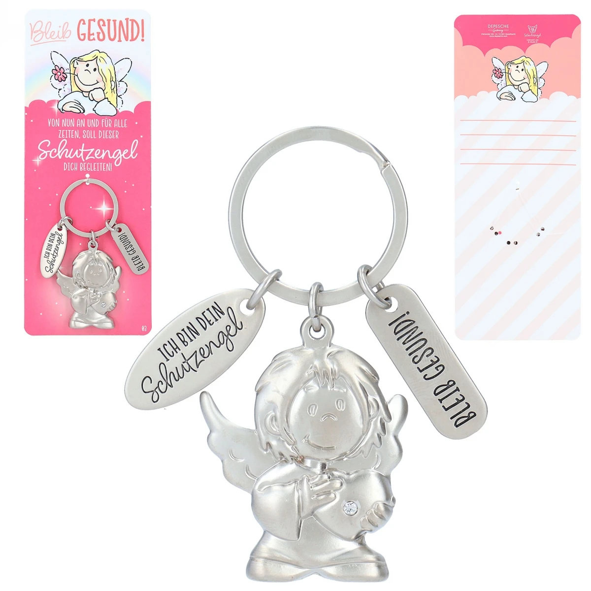 Dieser silberne Schutzengel-Schlüsselanhänger (Zinklegierung) erinnert daran, gesund zu bleiben.