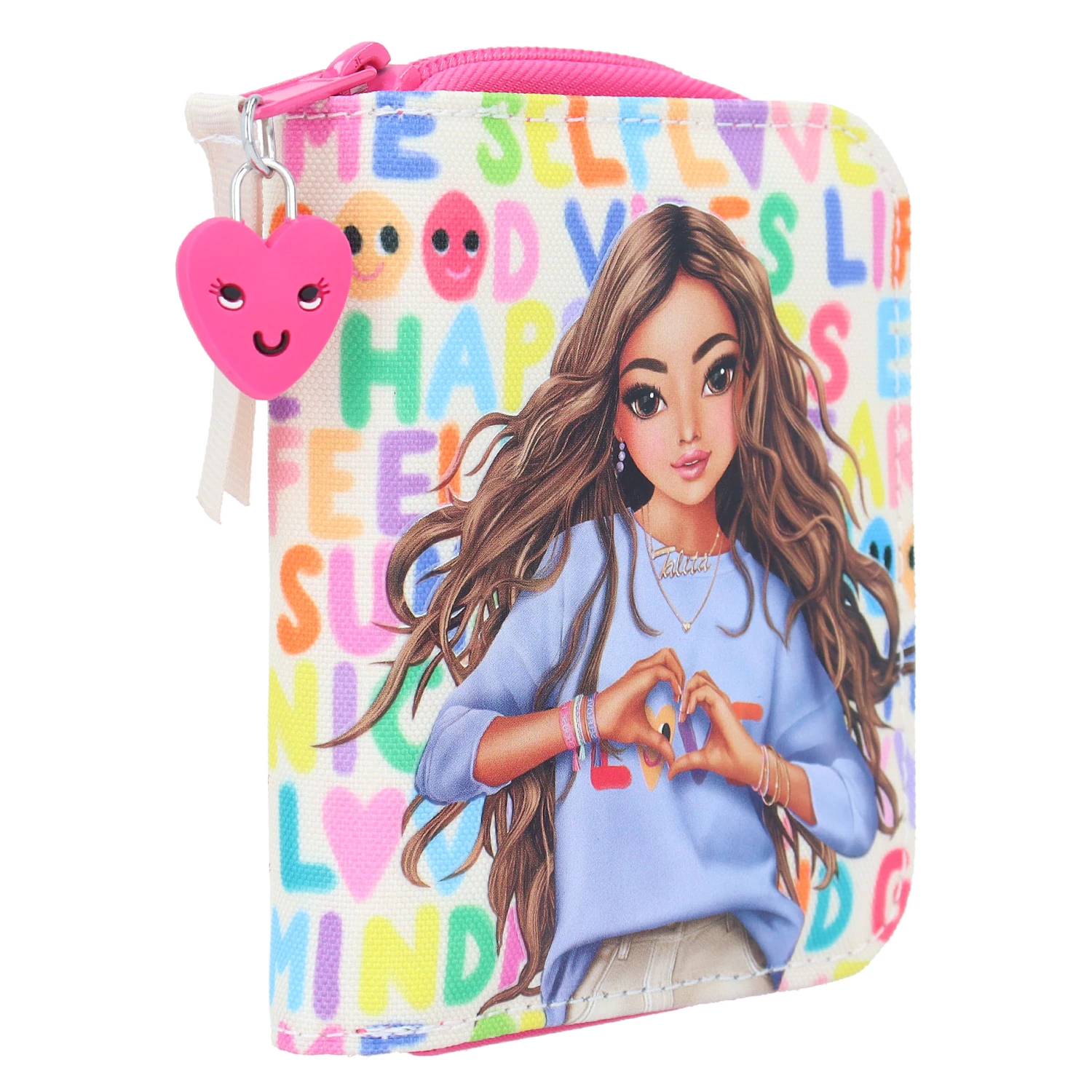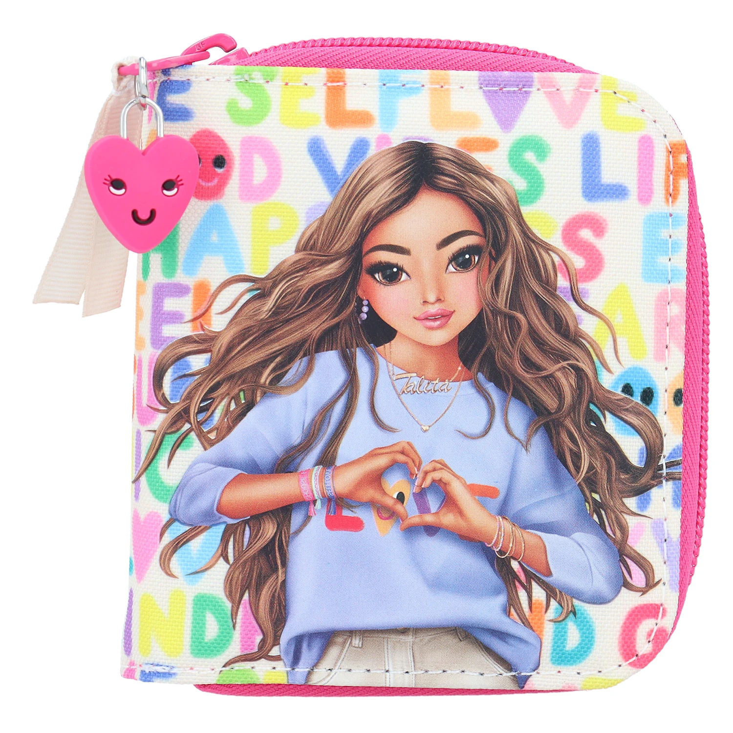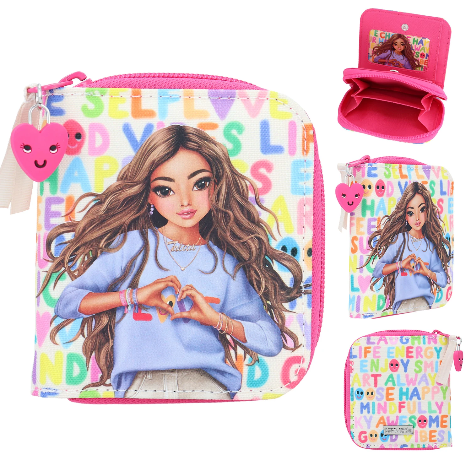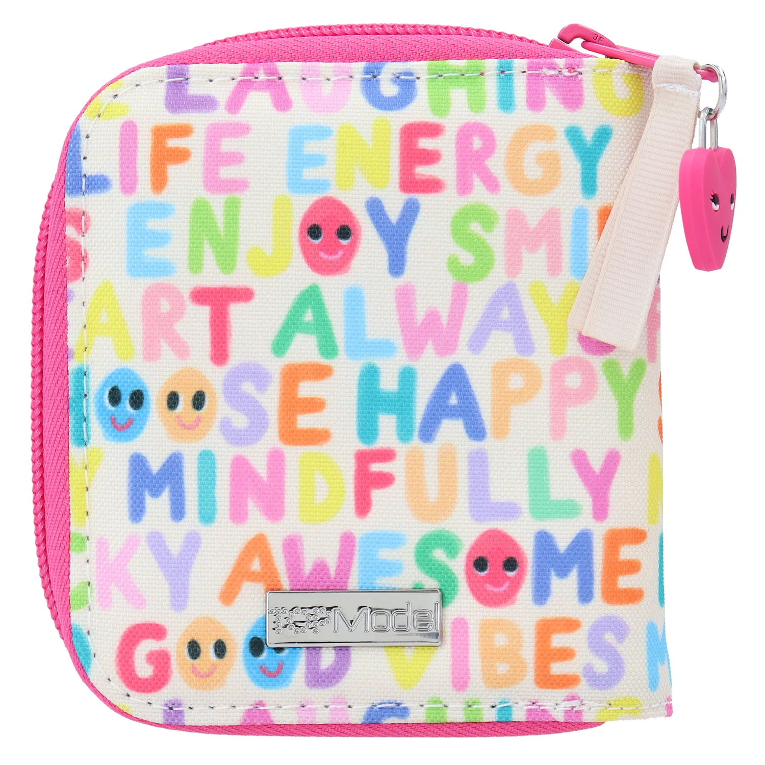 Das Portemonnaie aus der TOPModel-Serie Selflove ist ein fröhliches Farb-Spektakel mit einem coolen Model-Print auf der Front und einem superhippen Schrift-Allover voller Wohlfühl-Wörter.