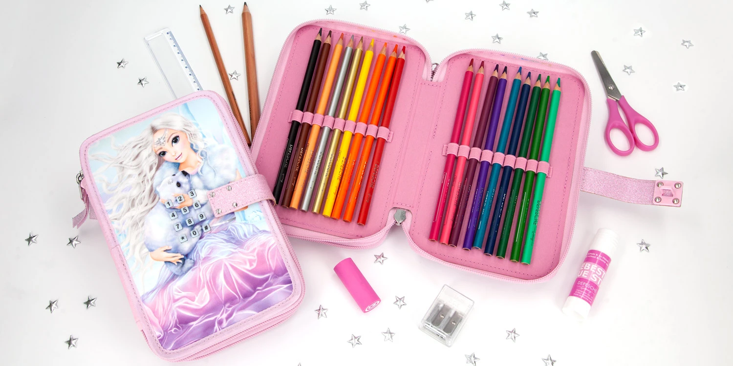 Die Federtasche aus der TOPModel-Serie ICEWORLD mit traumhaftem Model-Eisbärbaby-Motiv öffnet sich nur, wenn der richtige (persönlich einstellbare) Code eingegeben wird.