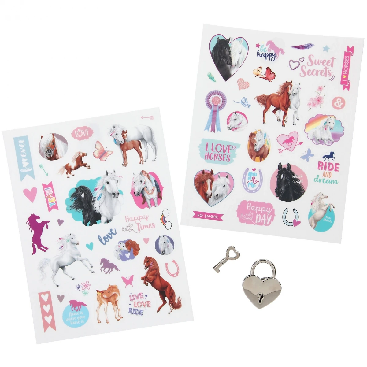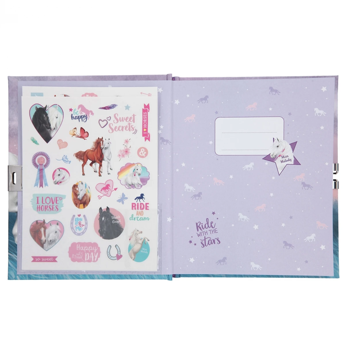 Das Tagebuch von Miss Melody mit silbernem Herz-Schloss hat 192 fein linierte, wunderschön illustrierte Seiten sowie zwei Bogen bunte Sticker.