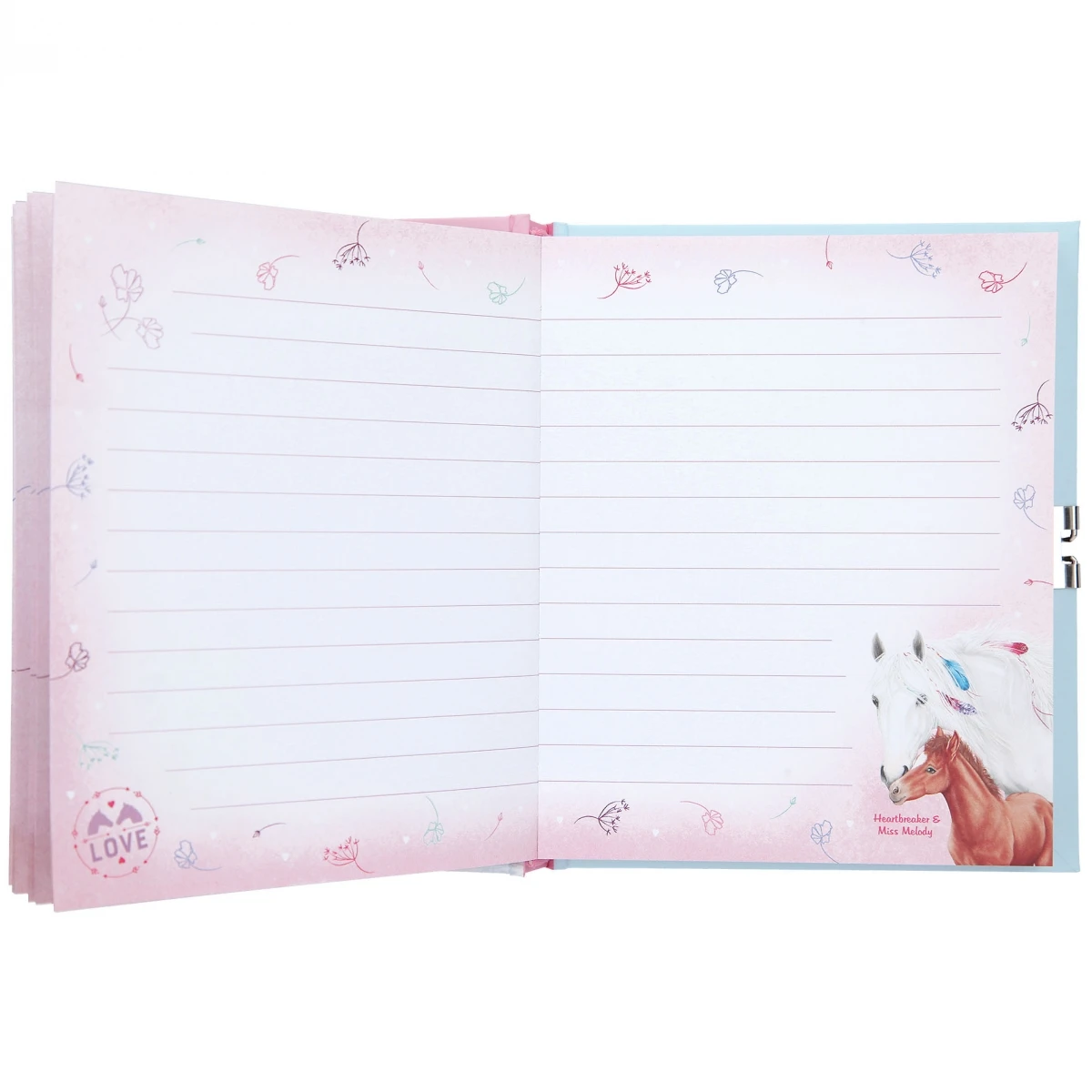 Das Tagebuch von Miss Melody mit silbernem Herz-Schloss hat 192 fein linierte, wunderschön illustrierte Seiten sowie zwei Bogen bunte Sticker.