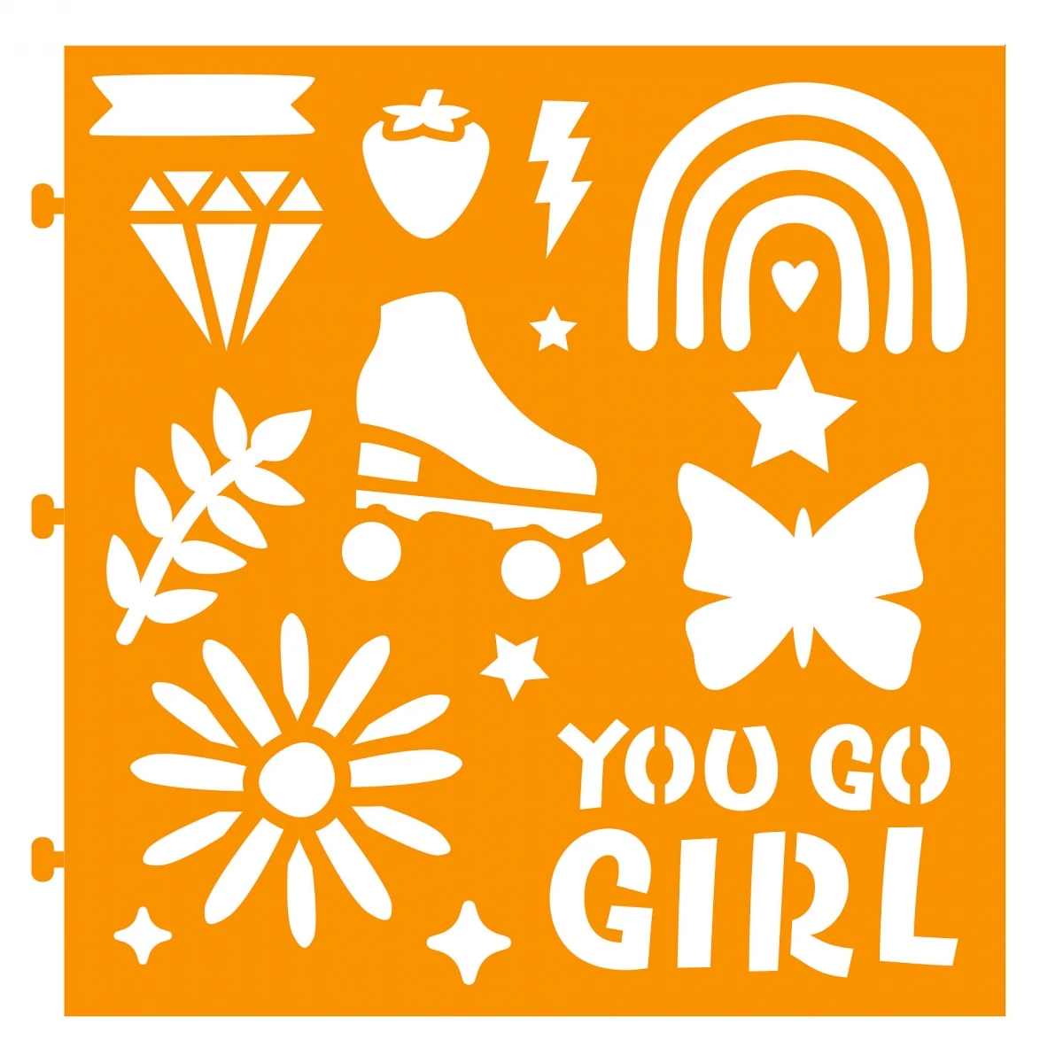 Mit Schablone, 2 Sticker-Bögen und bunten Mal-Vorlagen.
