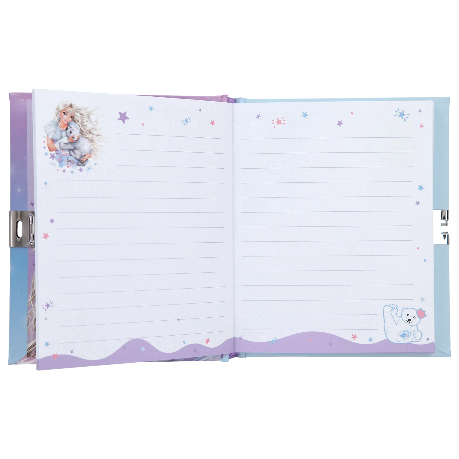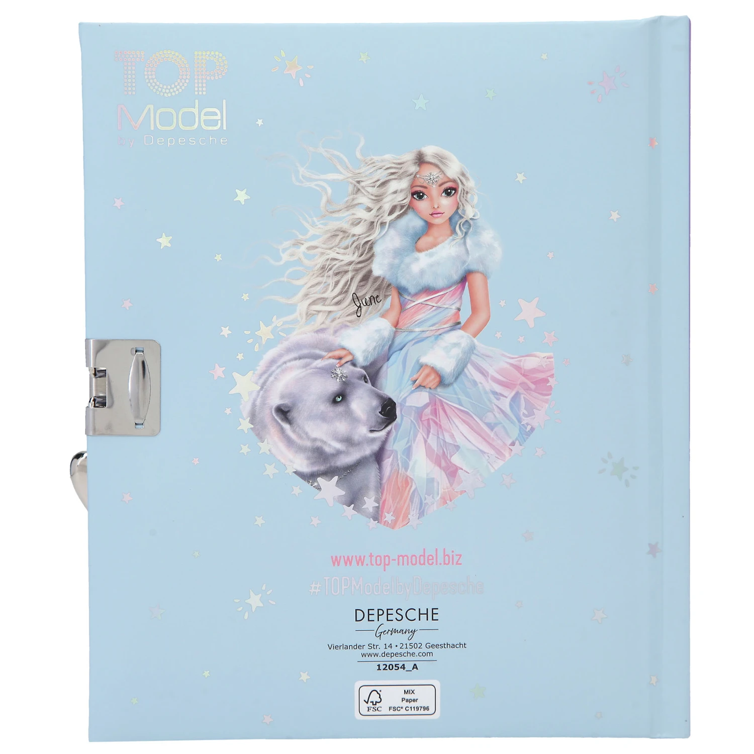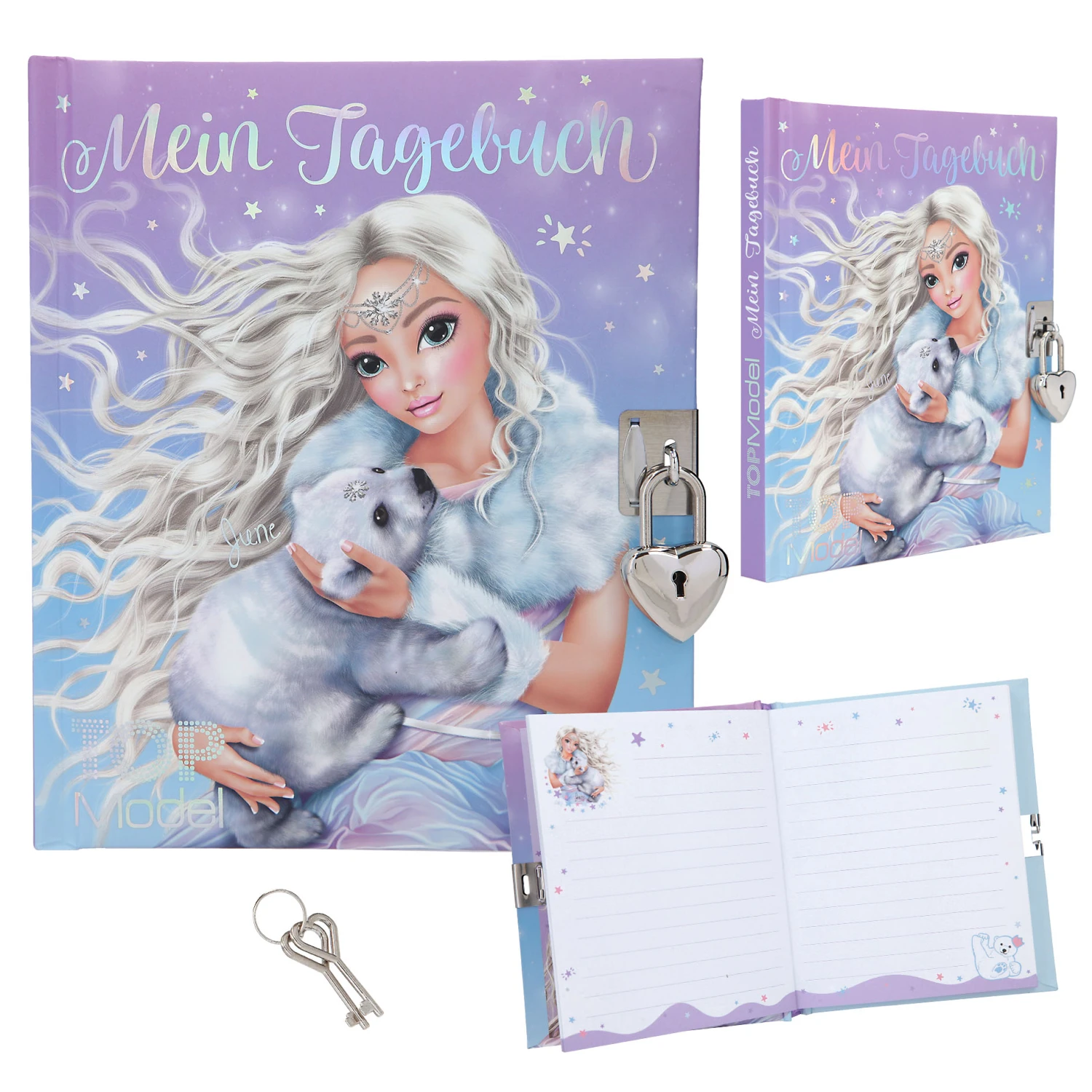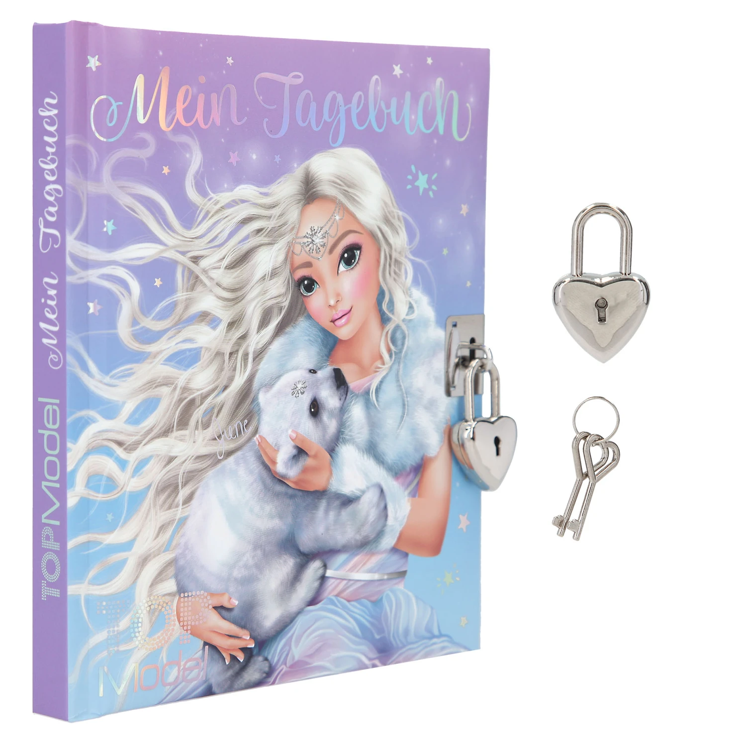 Das Tagebuch aus der TOPModel-Serie ICEWORLD hat 192 linierte und bunt illustrierte Seiten, die von einem Herzschloss vor neugierigen Blicken geschützt werden.