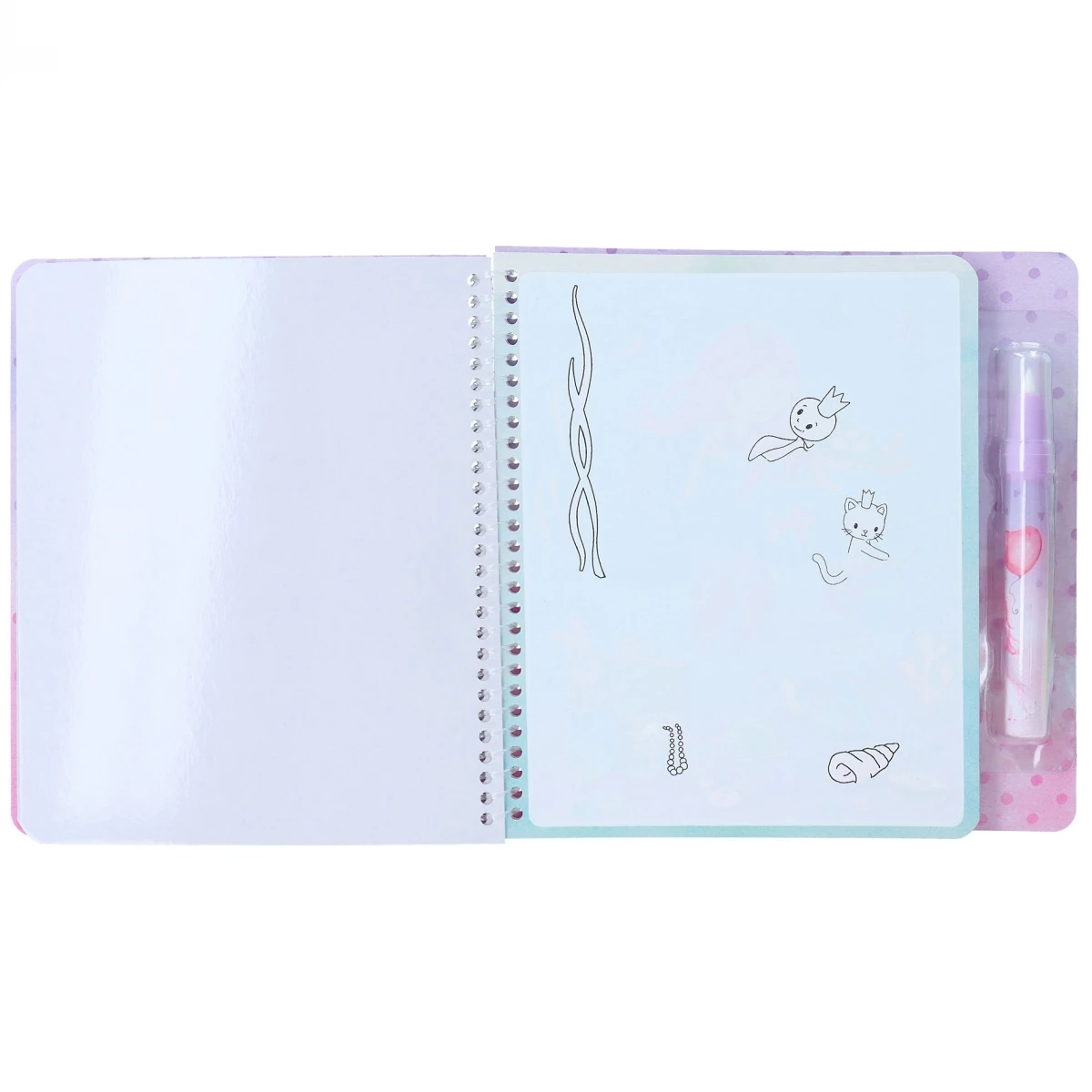 Im Aqua Magic Book von Princess Mimi erscheinen wie durch Zauberhand wunderschöne Motive, wenn man mit dem Wasser-Stift (befüllbar) über die weißen Seiten streicht.