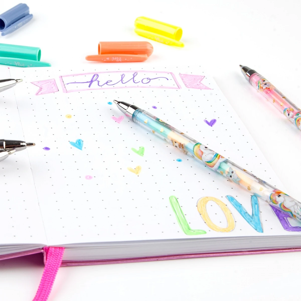 Fünf verschiedene Stifte mit niedlichen Illustrationen. Die Minen sind nicht austauschbar.