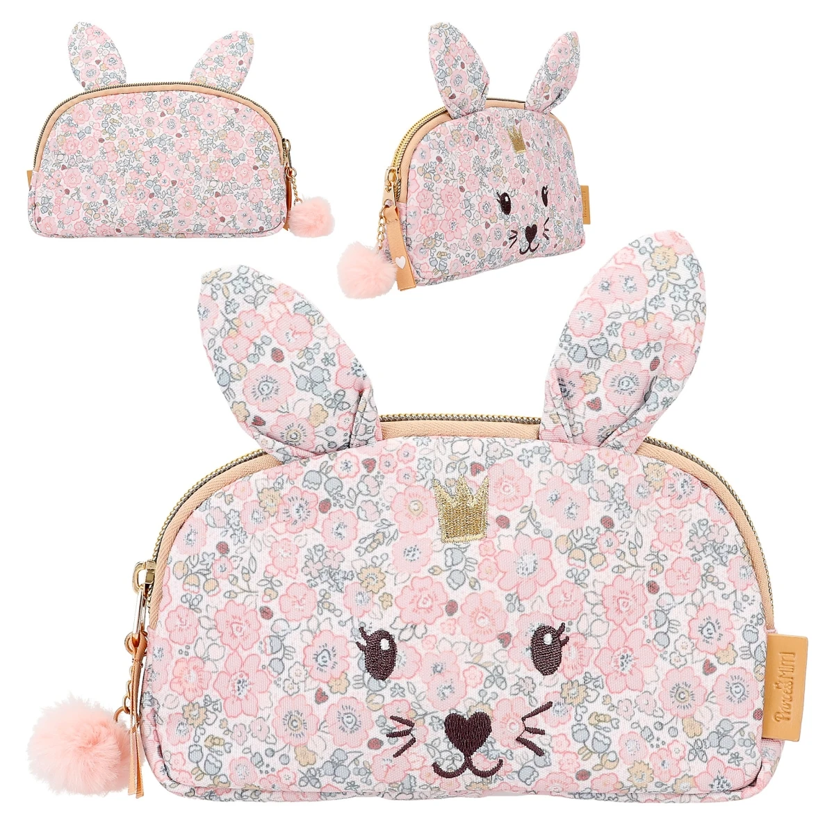 Wenn Prinzessinnen reisen: In der kleinen Kosmetiktasche von Princess Mimi in niedlichem Hasen-Design mit süßen Öhrchen, gesticktem Gesicht und tollem Blümchen-Allover ist Platz für Zahnbürste, Haarspangen & Co.