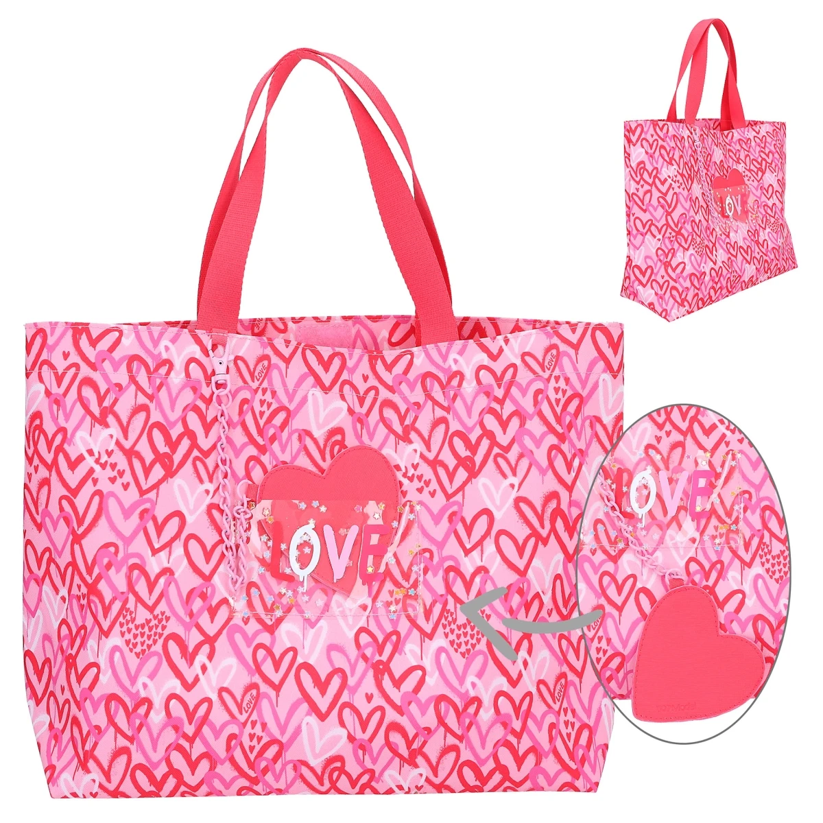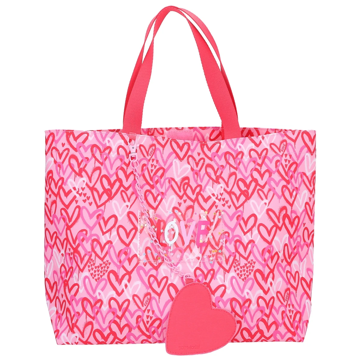 Herzallerliebst: Die Shopper-Tasche One Love mit aufgesetzter Tasche vorne, kleiner Innentasche innen und süßem, angeketteten Anhänger ist mit dem tollen Herz-Allover-Print ein echtes TOPModel-Highlight! Material: 100% Polyester