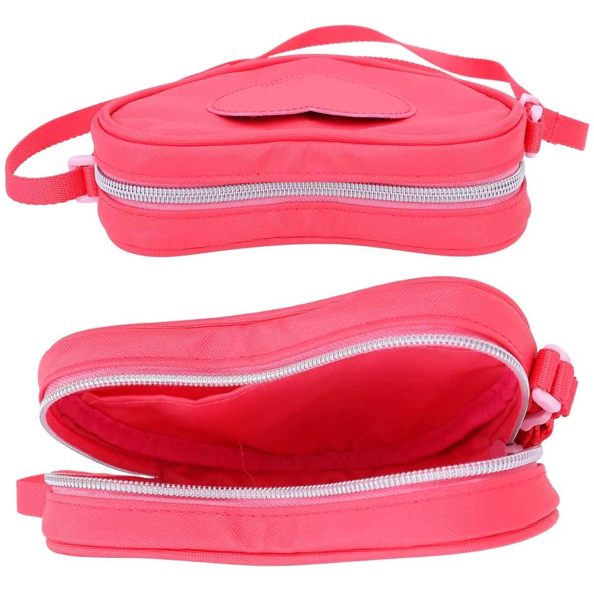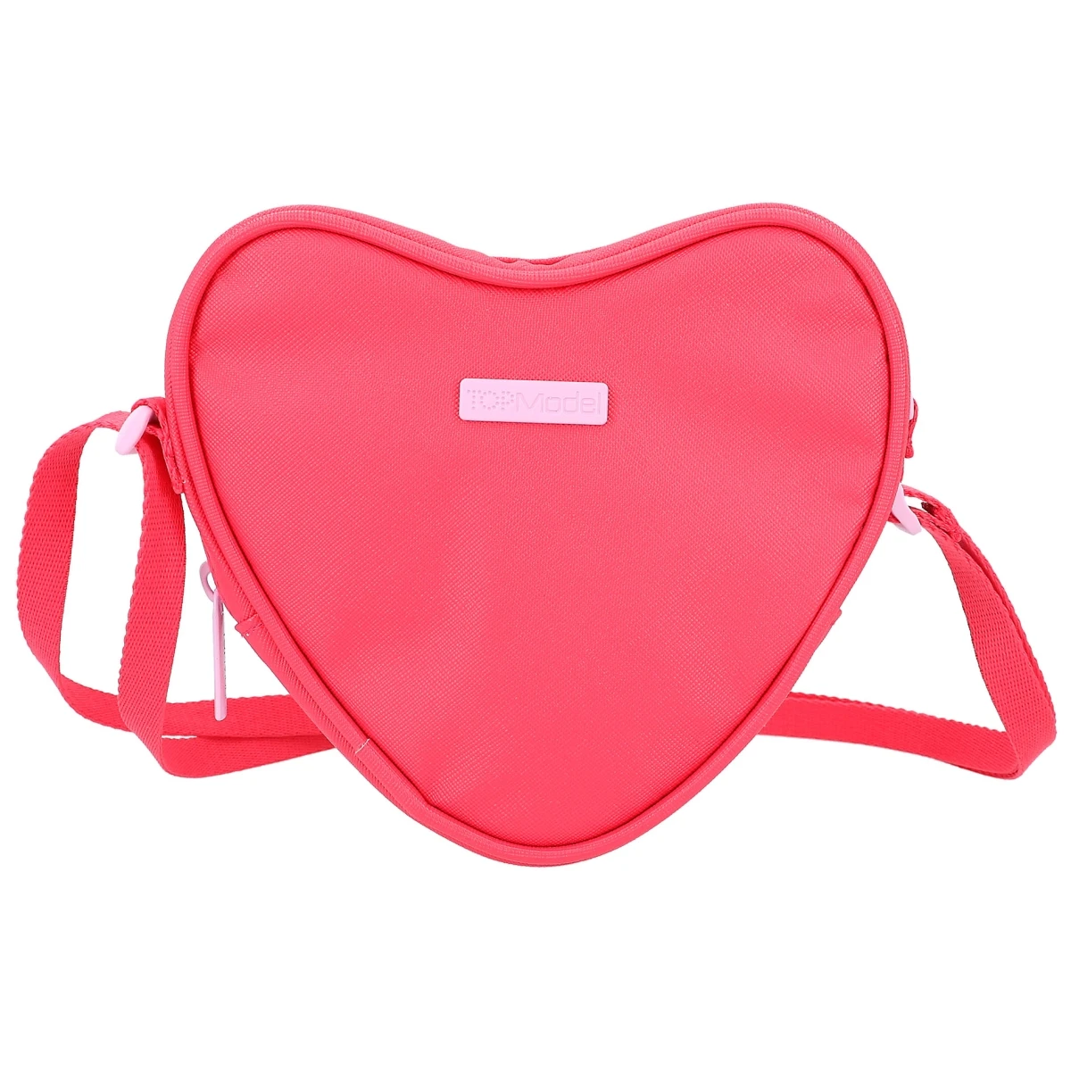 Ein echt herziger Hingucker: Die kleine rote TOPModel-Umhängetasche in Herzform mit vorne appliziertem Herz-Täschchen hat einen verstellbaren Umhängegurt.