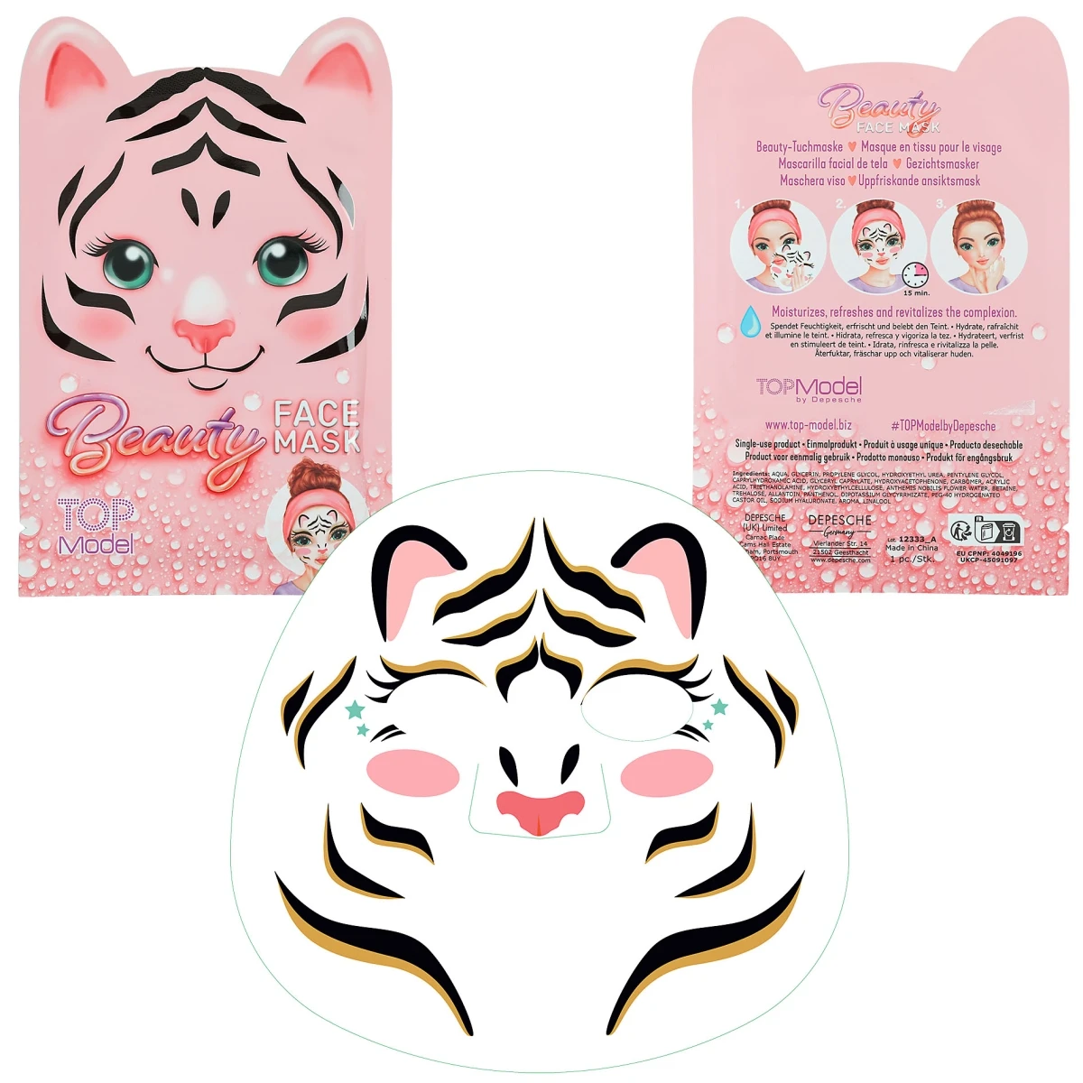 Die Tuchmasken aus der Beauty-Serie von TOPModel spenden Feuchtigkeit, erfrischen und beleben den Teint. Tierisch süß bedruckt im Look eines Tigers, Kätzchens oder Rehs.