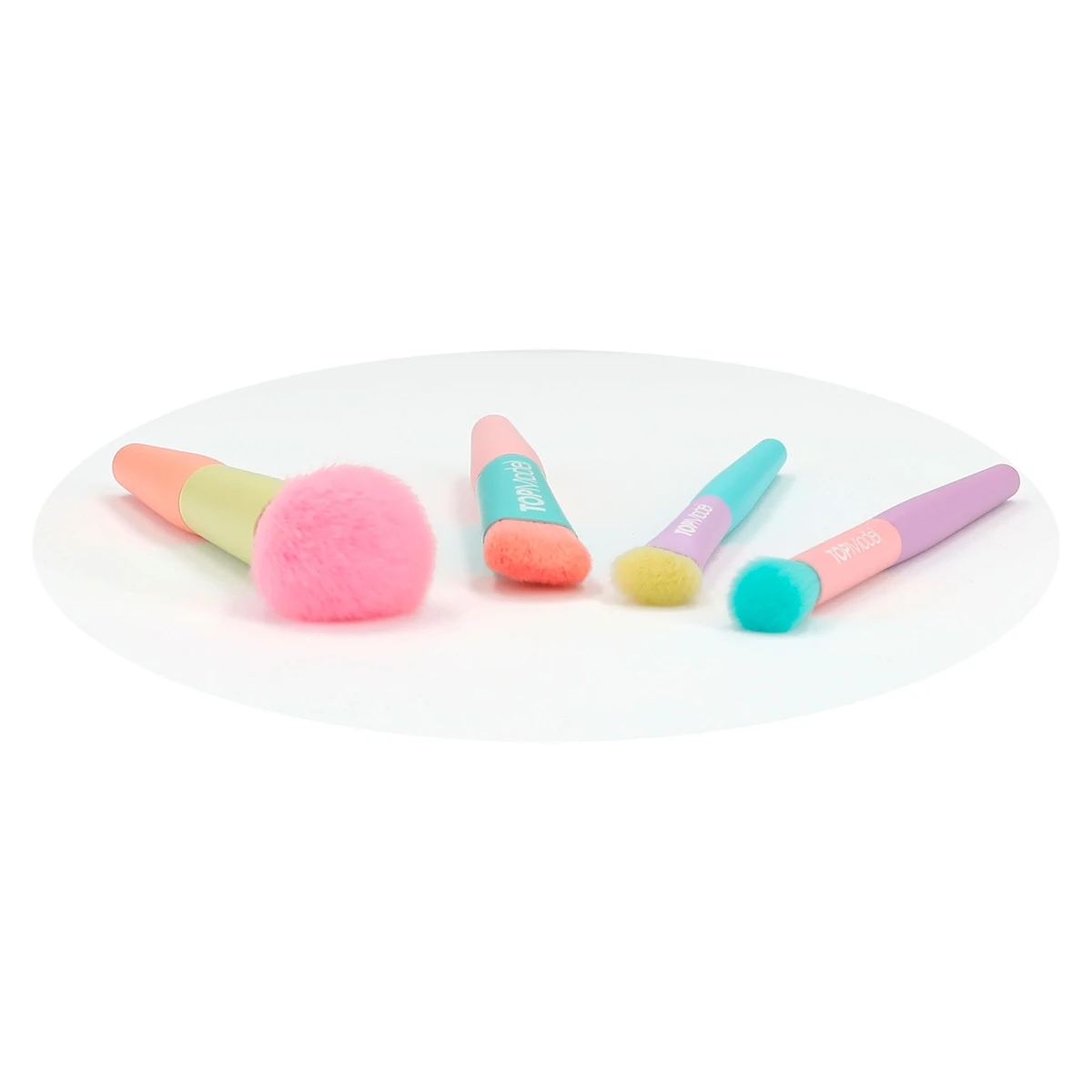 Mit dabei sind ein großer Puder-Pinsel, ein Lidschatten-Applikator, ein mittelgroßer Rouge-Pinsel und ein kleiner Foundation-Pinsel.