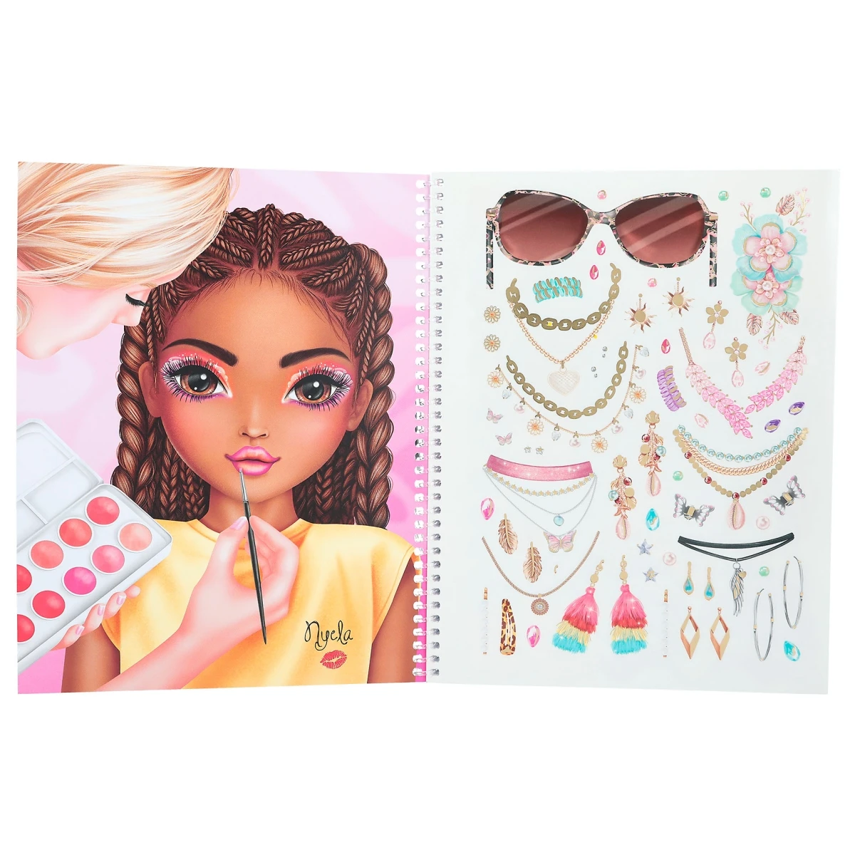 Mit dabei: eine Seite Foliensticker und eine Seite Papiersticker mit Schmuck und Accessoires sowie detaillierte Mal-Anleitungen für tolle Design-Ergebnisse.