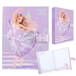 Traumhaft schön und supersicher: Das lilafarbene TOPModel-Tagebuch mit großem Ballett-Motiv öffnet sich nur, wenn der richtige (persönlich einstellbare) Code eingegeben wird.
