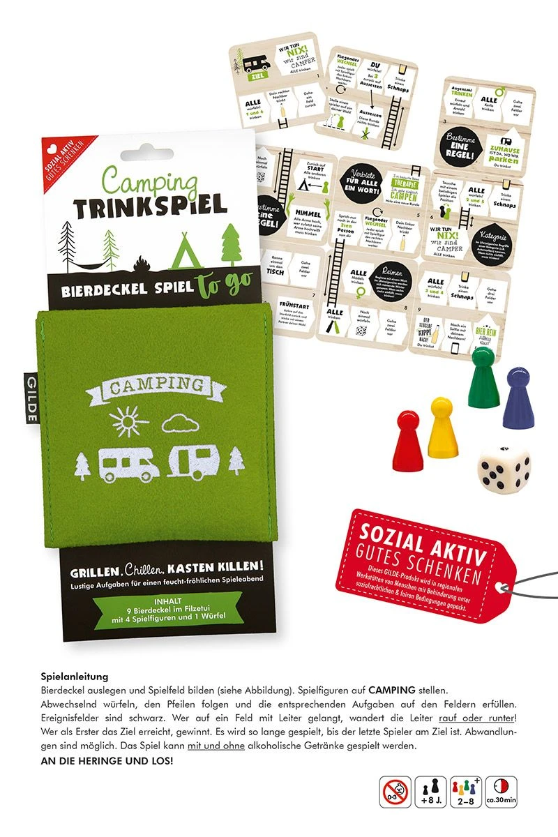 9 Bierdeckel im Filzetui mit 4 Spielfiguren und 1 Würfel, mit Spielanleitung