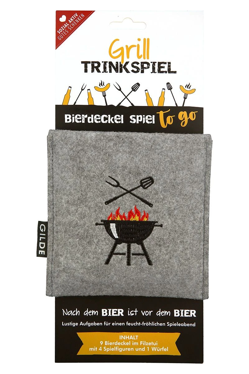 9 Bierdeckel im Filzetui mit 4 Spielfiguren und 1 Würfel, mit Spielanleitung