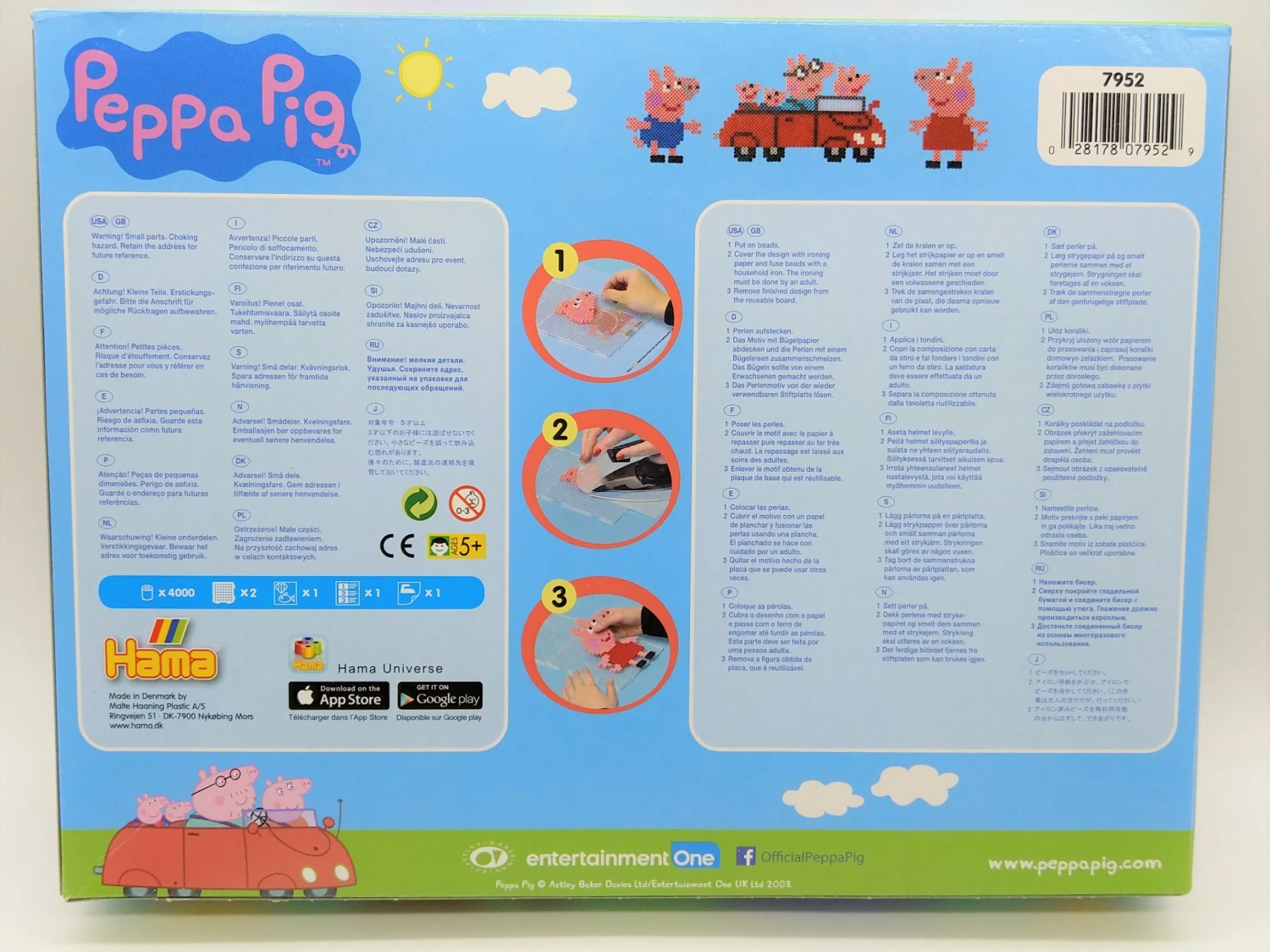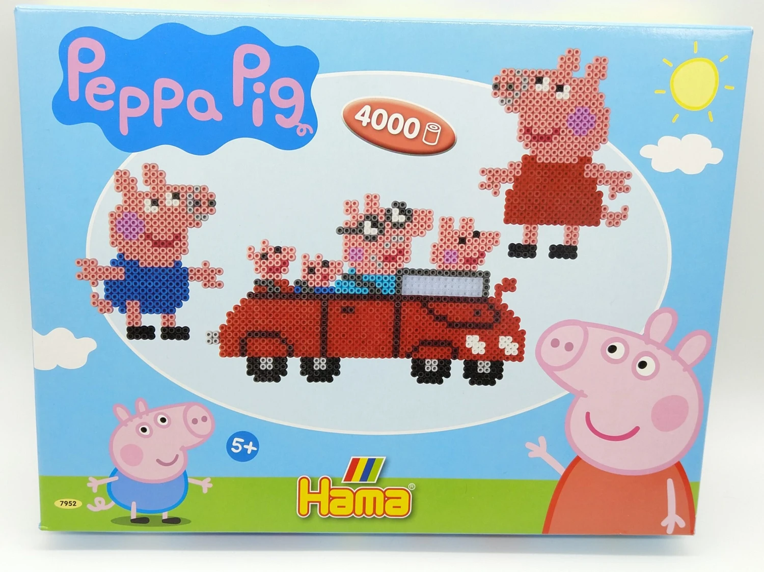 Die HAMA Geschenkpackung Peppa Pig enthält ca. 4000 Bügelperlen, 2 transparente, quadratische Stiftplatten (zum Zusammenstecken), sowie eine Motivvorlage, Bügelpapier und Anleitung.