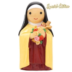 Die heilige Therese ist in Frankreich aufgewachsen. Als sie noch sehr jung war, wusste die heilige Theresia, dass sie ihr Leben Gott widmen wollte. Sie lehrte die Menschen, dass sie kleine Gesten der Freundlichkeit für Christus tun sollten. Als sie aufwuchs, wurde sie eine Schwester, die sich den Karmeliten anschloss. Die heilige Terese versprach: „Nach meinem Tod werde ich einen Rosenregen fallen lassen.“