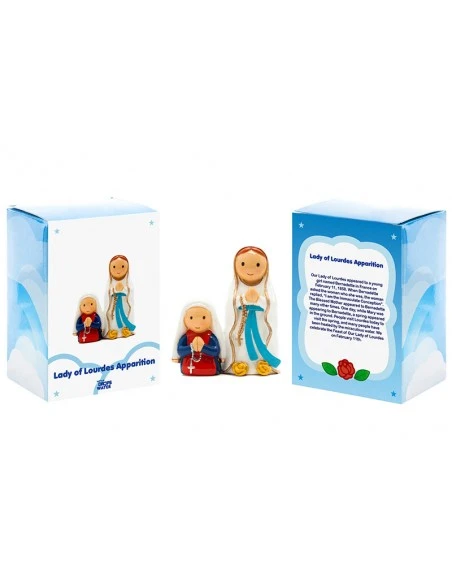 Unsere Liebe Frau von Lourdes erschien am 11. Februar 1858 einem jungen Mädchen namens Bernadette in Frankreich. Als Bernadette die Frau fragte, wer sie sei, antwortete die Frau: „Ich bin die Unbefleckte Empfängnis“. Die Gottesmutter erschien Bernadette noch viele andere Male. Eines Tages, als Maria Bernadette erschien, tauchte eine Quelle im Boden auf. Heute besuchen die Menschen Lourdes, um die Quelle zu besuchen, und viele Menschen wurden durch das wundersame Wasser geheilt.