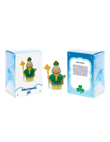 St. Patrick wurde im römischen Britannien in eine wohlhabende Familie geboren. Als er jung war, wurde er von irischen Piraten entführt und nach Irland gebracht. Die Menschen dort glaubten an falsche Götter. St. Patrick entkam, entschloss sich aber später, nach Irland zurückzukehren, um die Menschen dort über Jesus zu unterrichten. Er ist am bekanntesten dafür, dass er ein Kleeblatt verwendet, um die Menschen über die Allerheiligste Dreifaltigkeit zu unterrichten. Er ist der Schutzpatron Irlands.