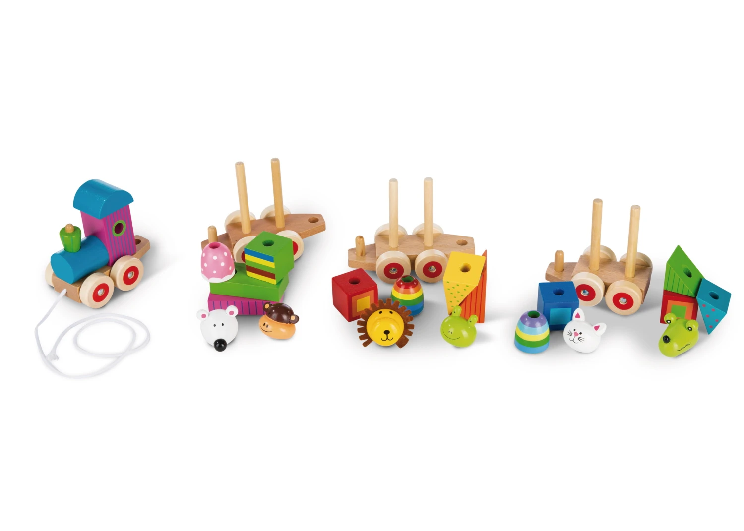Im Rollenspiel können die Bauklötzchen und die Tiere auf verschiedene Abteile des Zuges verteilt werden.