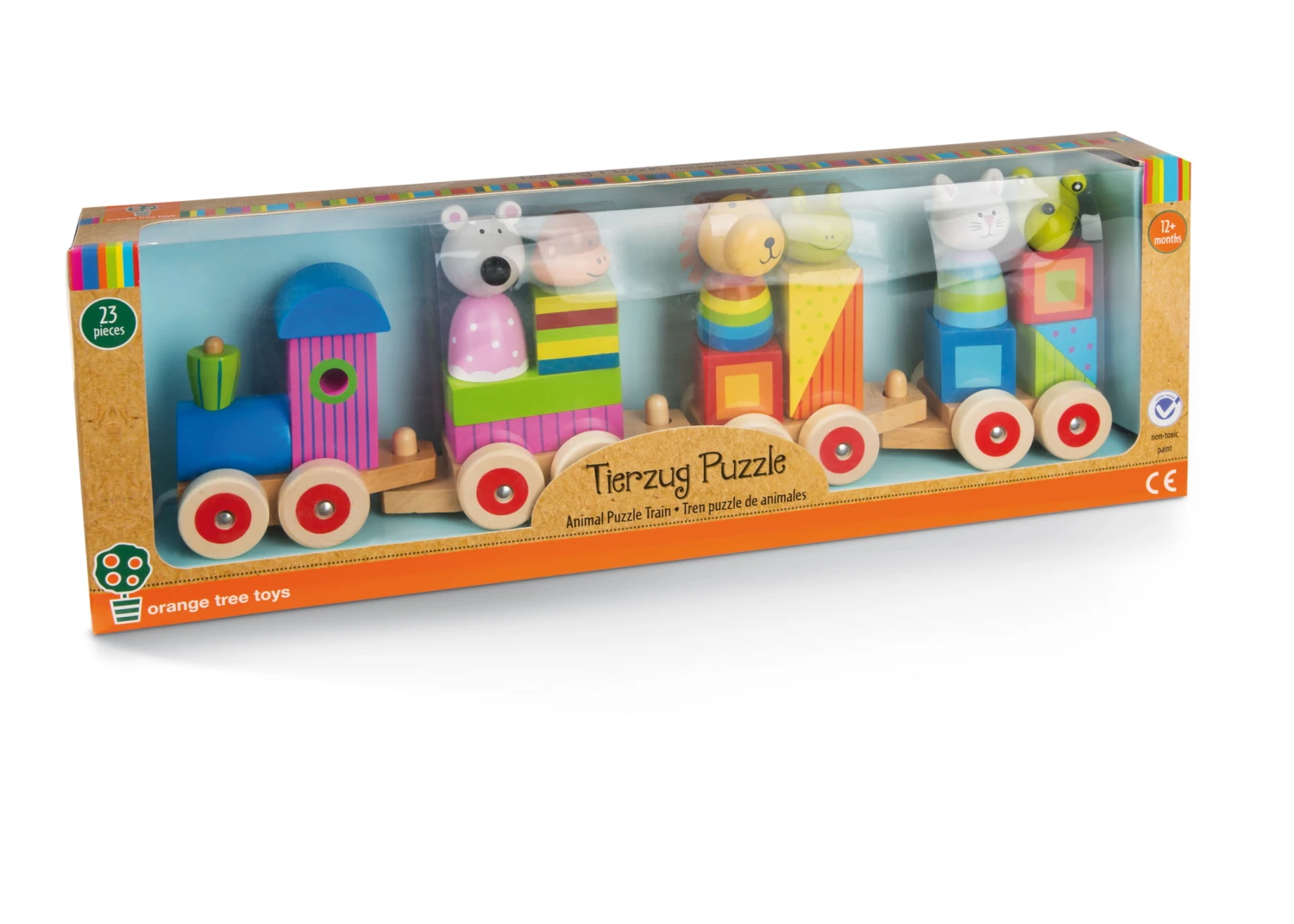 Das Tierzug Puzzle vereint Zug und Puzzle in sich und ist ein tolles Spielzeug, dass die Motorik schult und die Fantasie anregt.