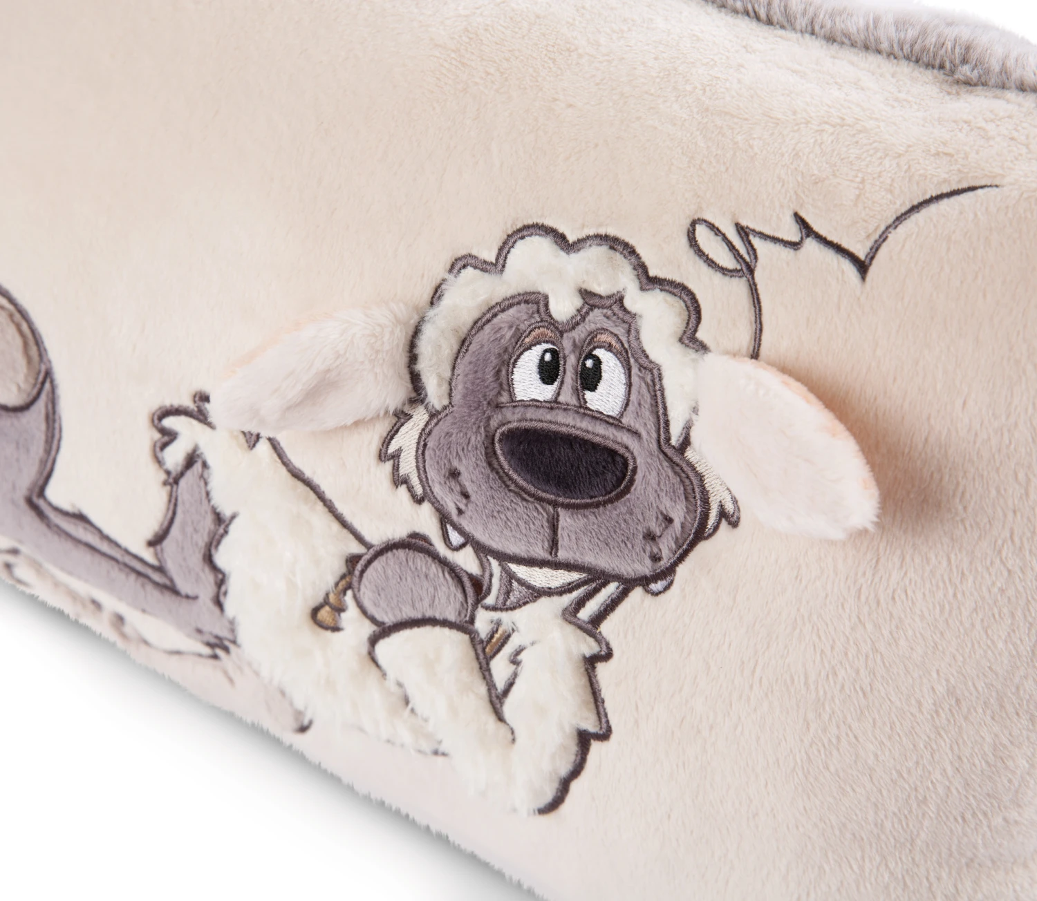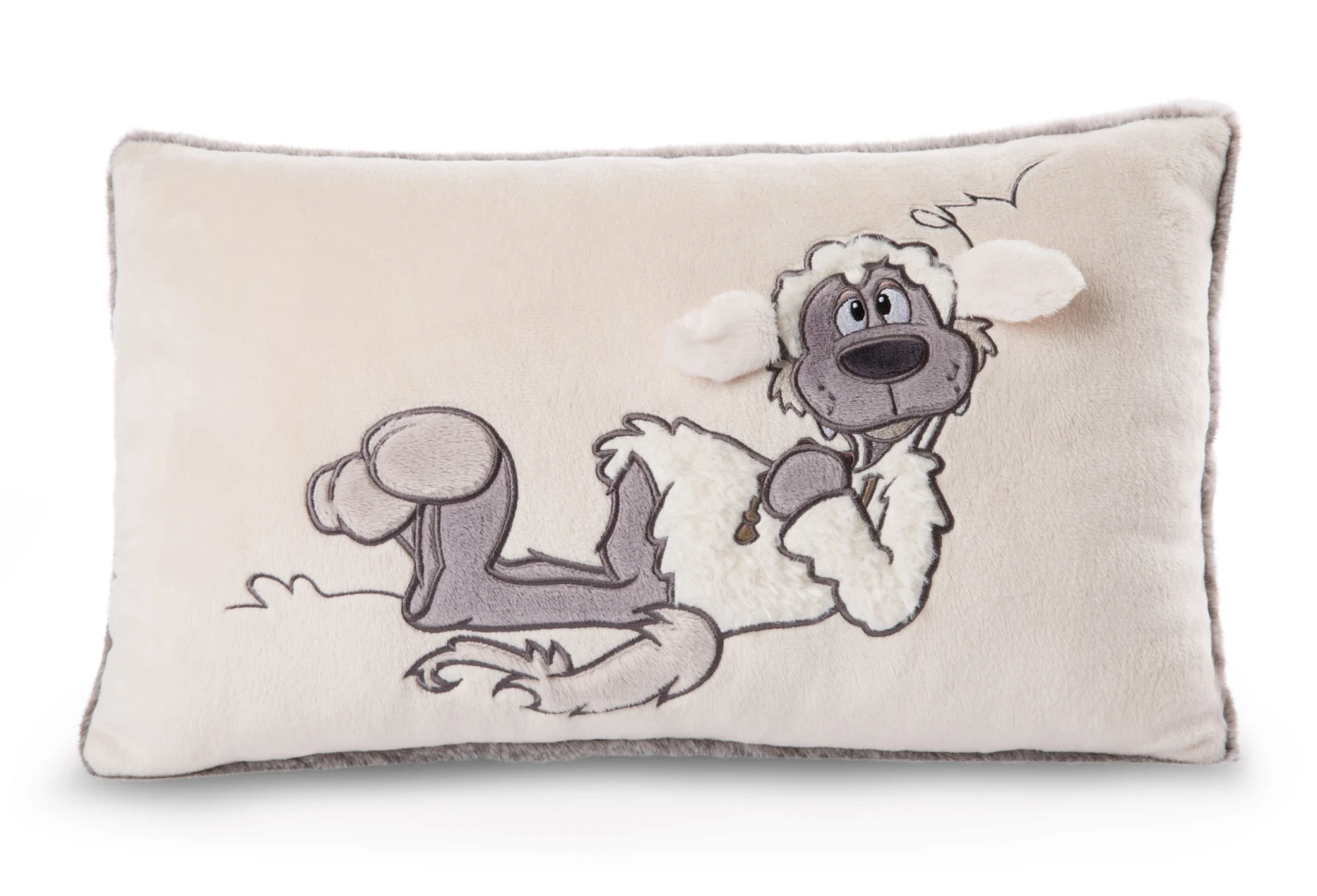 Die Ohren des Wolfes stehen aus dem Kissen heraus