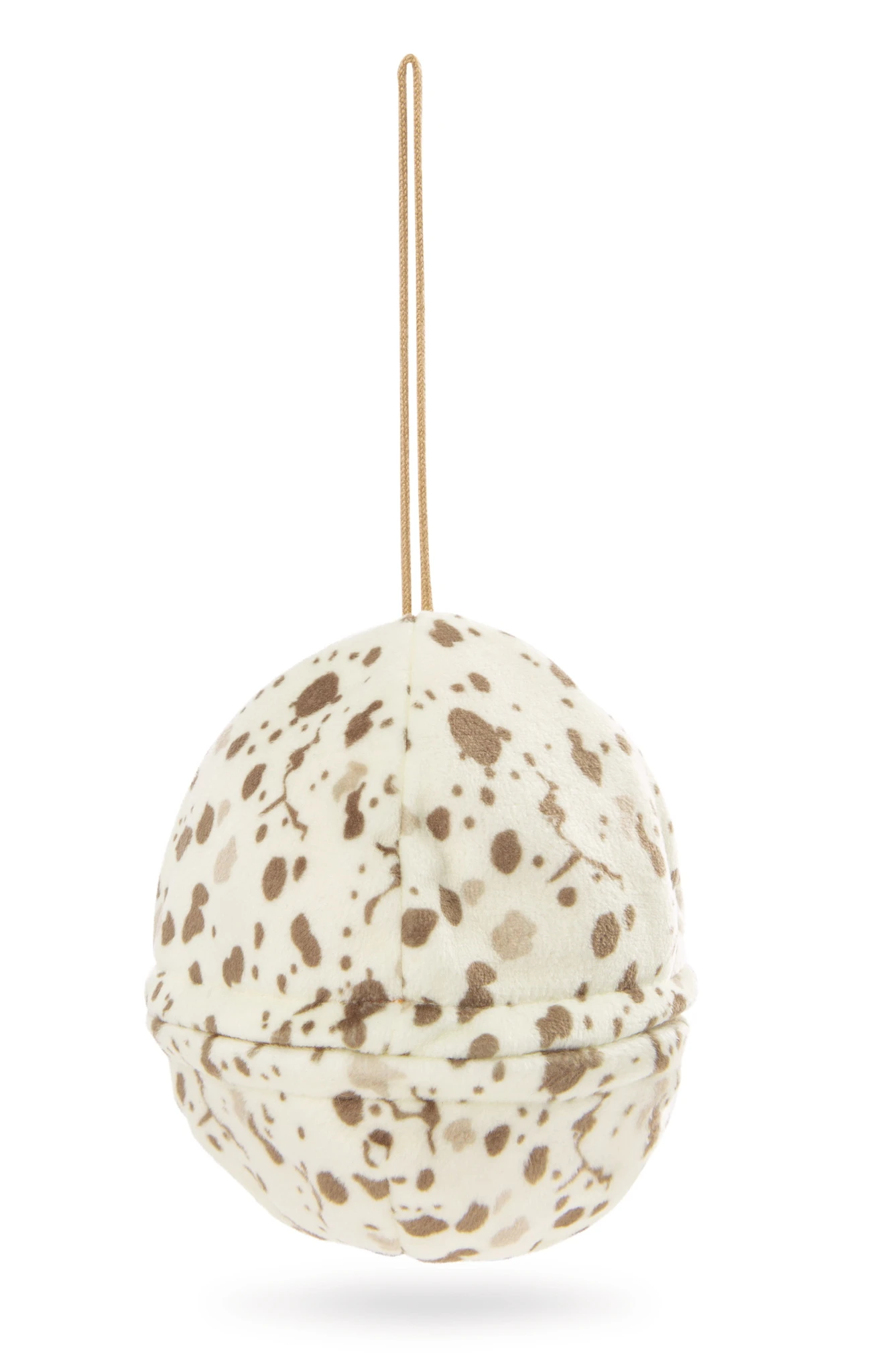Mit Loopband am Ei. Das Ei lässt sich mittels Reißverschluss öffnen.