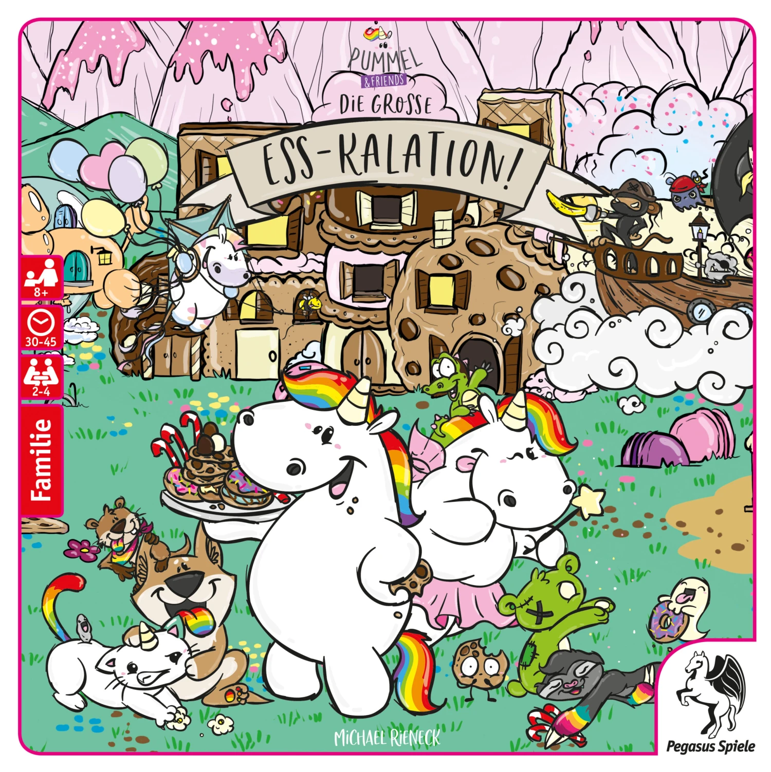 Zwei bis vier Spieler ab acht Jahren begeben sich in Pummel & Friends – Die große Ess-Kalation auf eine spannende Sammeltour und können dabei erstmalig die verschiedenen Orte der Glitzerwelt mit der Hauptstadt Keksen erkunden. Dank pfiffigem Würfelmechanismus und jeder Menge Charme kann hier die ganze Familie ein ganz besonderes Pummeleinhorn-Abenteuer erleben.