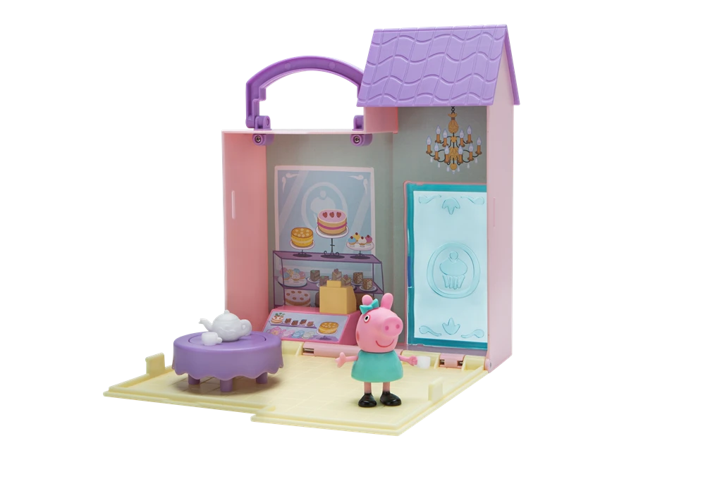 Beinhaltet eine exklusive Peppa Pig Figur, eine Kassentheke und einen Tisch zum Drehen mit Teeset