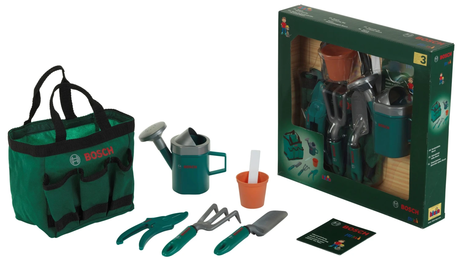 ACHTUNG! Nur unter der direkten Aufsicht eines Erwachsenen Benutzen. Dieses Spielzeugset enthält funktionsbedingt Teile mit scharfen Kanten (z. B. Schere) oder mit scharfen Spitzen (z. B. Harke). Verletzungsgefahr. Bitte außerhalb der Reichweite von kleinen Kindern unter 3 Jahren aufbewahren.