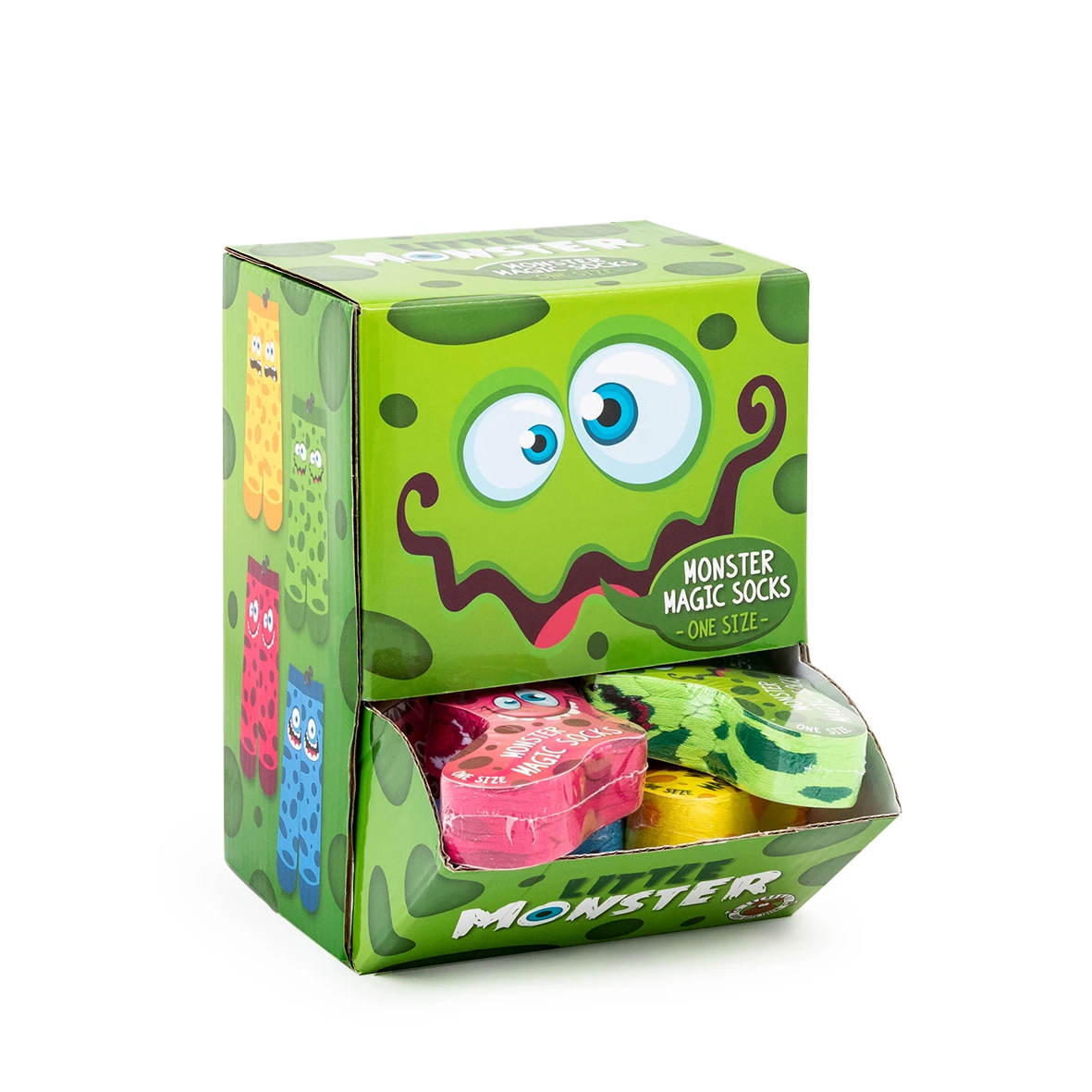 Die Magic Socks sorgen für Begeisterung bei Jung und Alt. Das klein gepresste Paar Magic Socks einfach für kurze Zeit ins Wasser legen und schon entfalten sich die Monstersocken zu ihrer vollen Größe!
