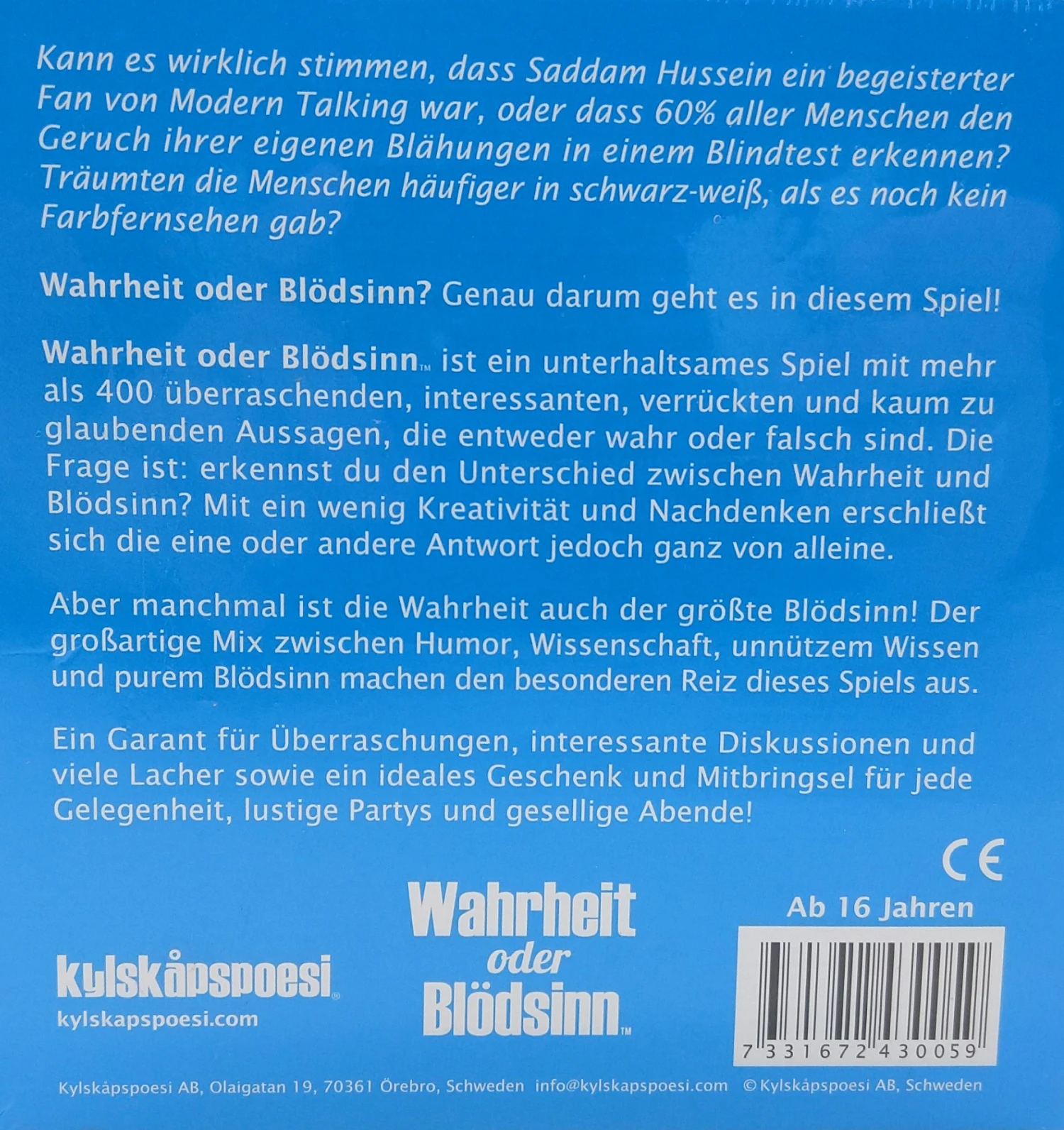 Ein Garant für Überraschungen, interessante Diskussionen und viele Lacher sowie ein ideales Geschenk und Mitbringsel für jede Gelegenheit, lustige Partys und gesellige Abende!